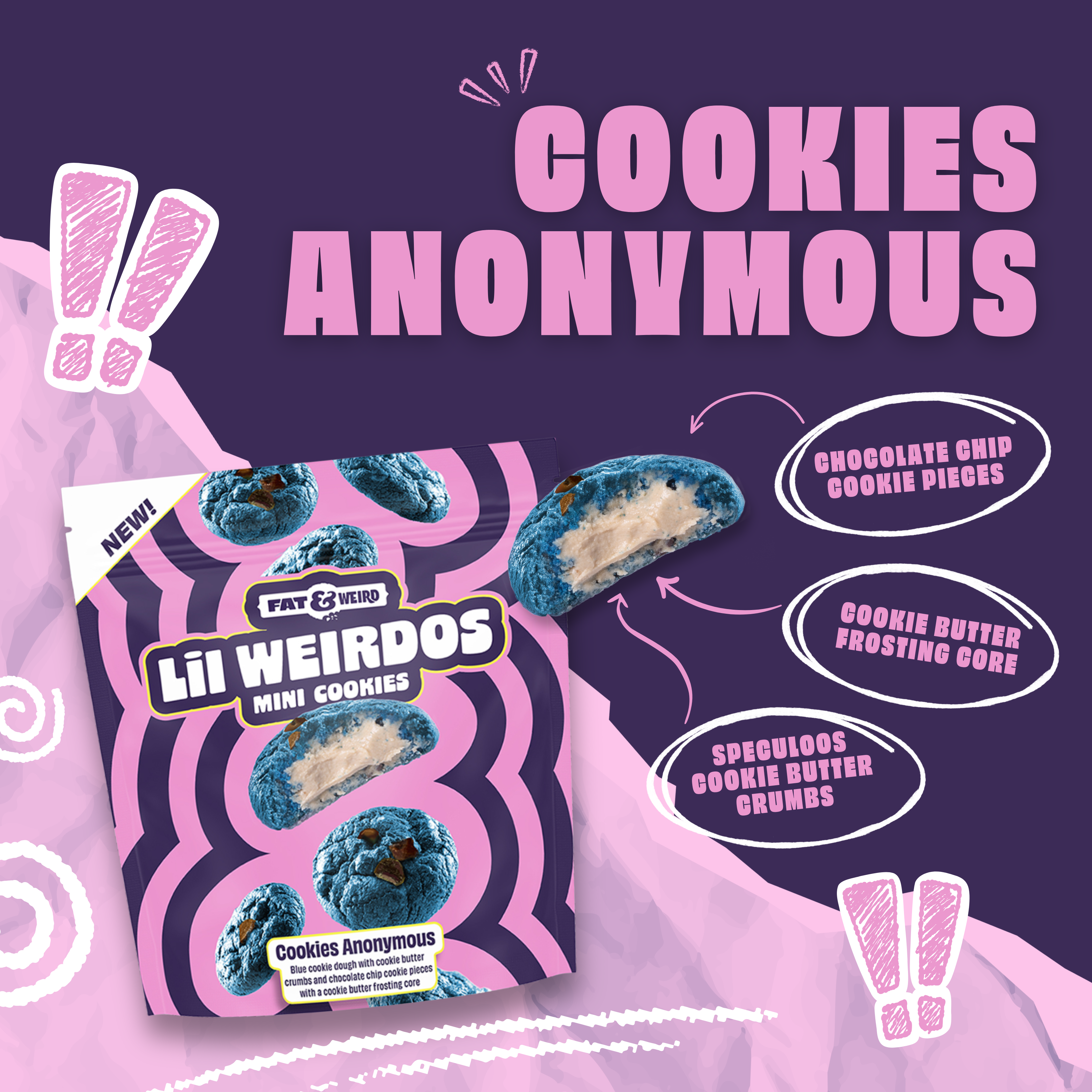 Meet Lil' Weirdo Mini Cookies. Our bite-sized take on the cookies you already obsess over. Same chaos. Same gooey center. Smaller bites. We took our full-size, stuffed, gooey-center cookies and shrunk them down into perfectly poppable minis… without losing a single ounce of flavor.