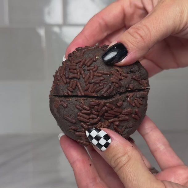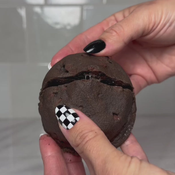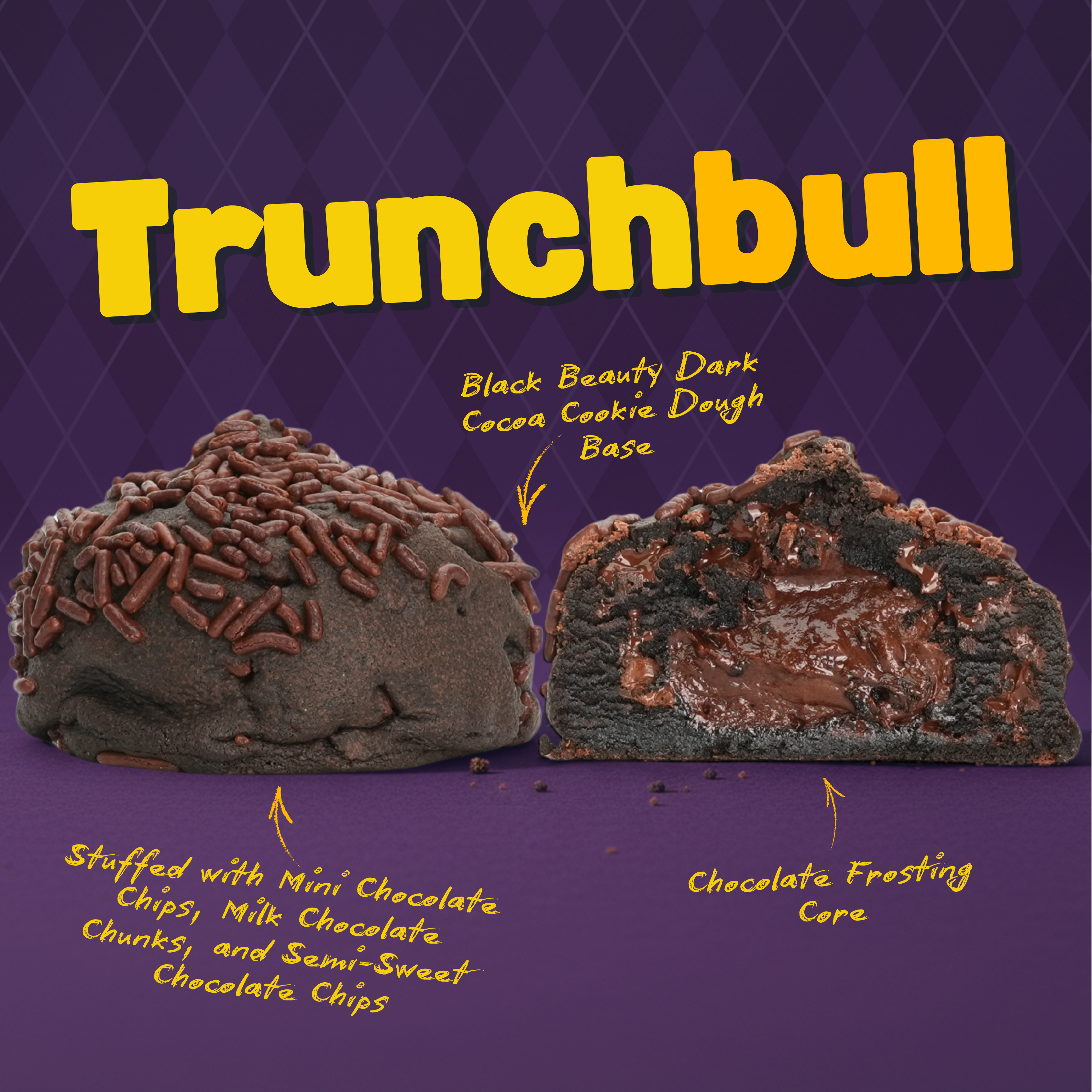 - š« Trunchbull - AĀ Black Beauty dark cocoa cookie base, stuffed with mini chocolate chips, milk chocolate chunks, semi-sweet chocolate chips, and a chocolate frosting core.
