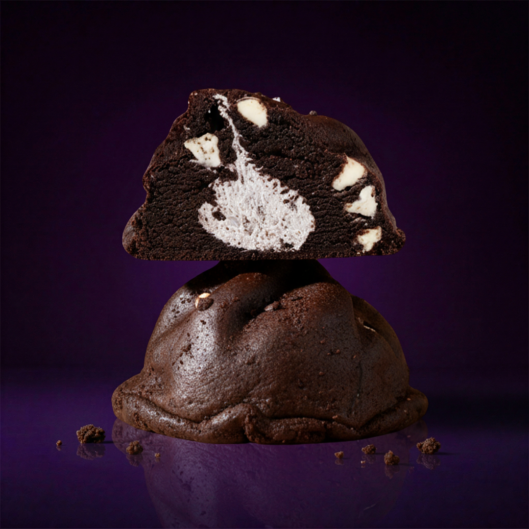 black cocoa Base & Oreo® Cream Core With White chocolate chips, massive cookie sandwich chunks Mixins